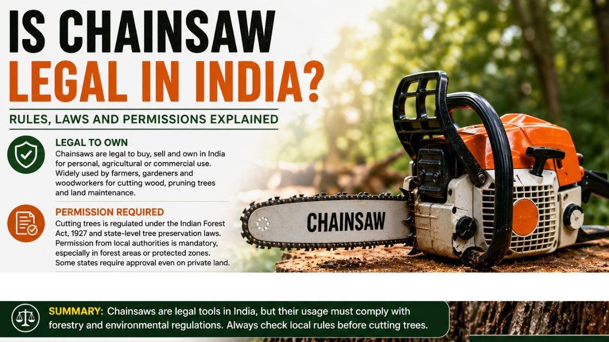 In summary, chainsaws are legal tools in India, but their usage must comply with forestry and environmental regulations. Always check local rules before cutting trees.